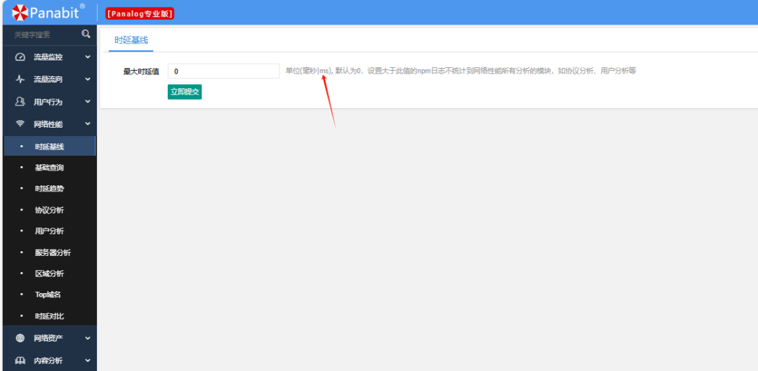 ● 第三方NAT日志 优化NAT日志解析模板,适配更多H3C的NAT日志格式。 ● 系统日志 优化日志记录功能,增加部分操作日志的记录。 ● 时延基线 优化时延基线设置,将单位修改成毫秒。 ● 日志解析 适配会话日志和URL日志中增加的账号组信息。
