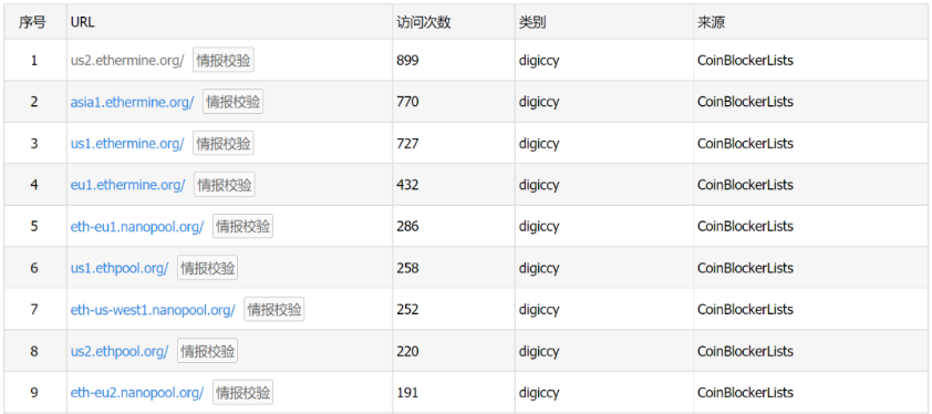 通过威胁情报来实现对网络中“挖矿”行为的监测,是一种常用的技术手段。各个威胁情报厂商有相对丰富的矿机样本,用户在使用中,只需要在安全设备上开启该功能进行检测即可。